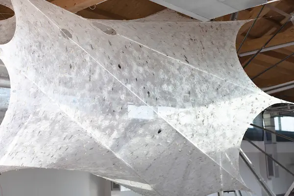 Arquitectura co-fabricada: En una escala mayor, el trabajo pionero de Neri Oxman y el Mediated Matter Group (MIT) con el Silk Pavilion desafió la arquitectura tradicional. Utilizando un brazo robótico para crear una base de hilo de seda, desplegaron después 6.500 gusanos de seda vivos sobre la estructura. Los gusanos, siguiendo su instinto biológico, rellenaron los huecos dejados por el robot, completando una cúpula impermeable y resistente.